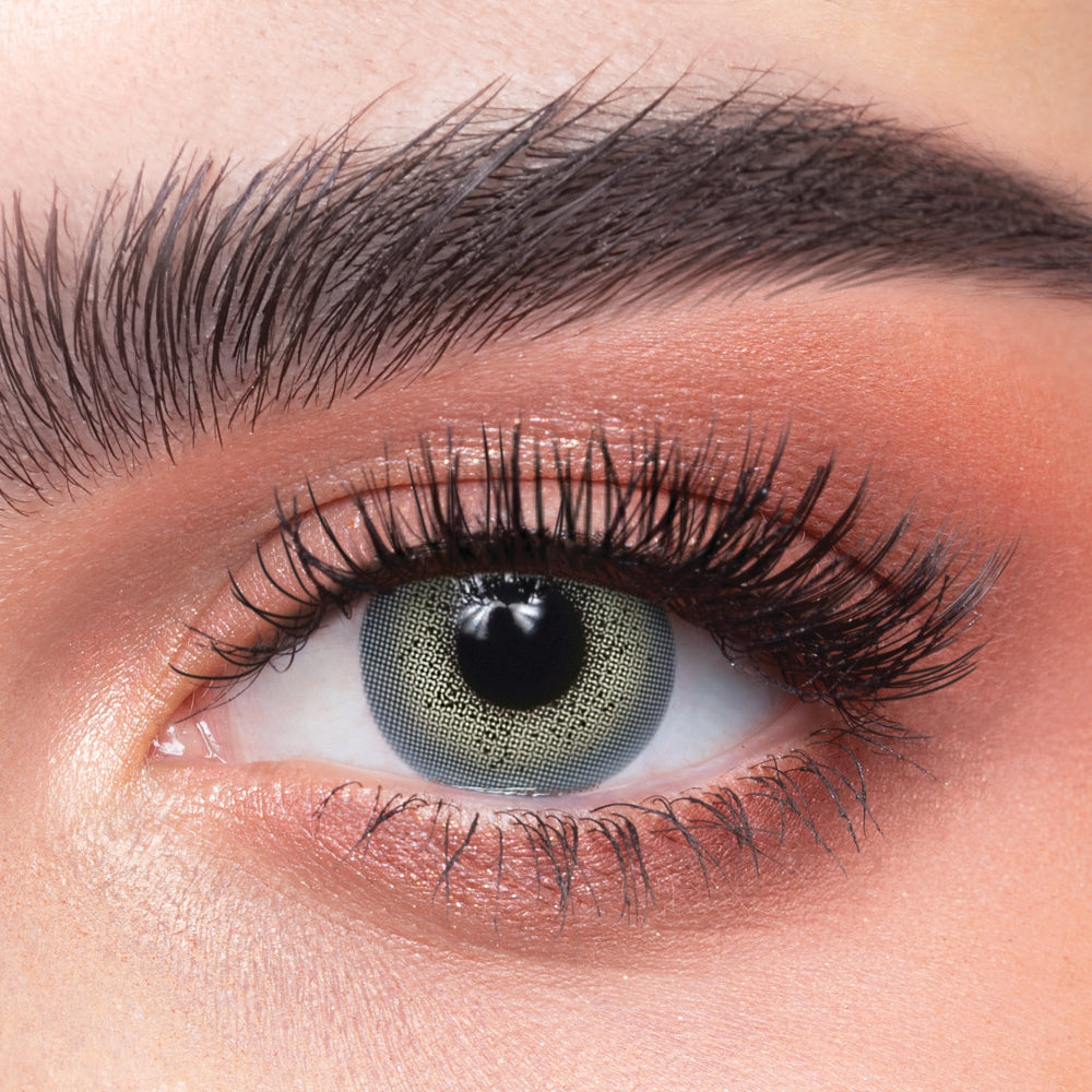 Dahab Rain contact lens is a unique combination of light blue and gray shades with hints of green. Ideal for day time and evening wear, this natural colored lens is suitable for dark eyes and comes with or without prescription! If you are looking for the natural light blueish gray eyes then Dahab Rain is the shade for you. This cosmetic lens comes with a delicate limbal ring of blue and shifts into a blend of light gray and green near the center to give the most outstanding color that has won the hearts of customers from all over the GCC and now across the world. Wear them during the day and into the evening hours to complete your look. These fashionable lenses have high opacity so you can be assured they will cover dark eyes well.